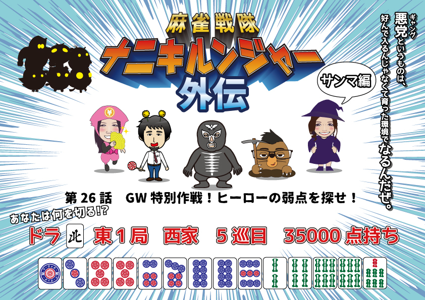 そこに突如現れたのは、無敵の英雄(ヒーロー)と呼ばれている麻雀戦隊ナニキルンジャーの6匹!